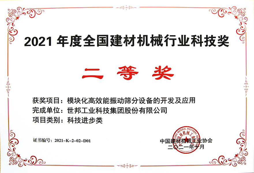 2021年度全國建材機械行業科技獎二等獎