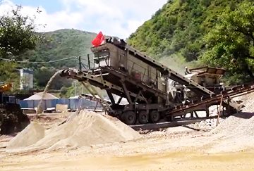 可以通過挖機或者鏟車上料到移動站的大料倉,料倉下給料機均勻給料到C6X顎破機內(nèi)破碎,顎破出來的料先上振動篩篩分篩分出部分成品,其余大料進入HST單缸液壓圓錐破破碎之后,共用顎破出料的主皮帶機送料到振動篩篩分,篩分出三種規(guī)格的成品料,篩網(wǎng)可根據(jù)客戶具體需要定制。