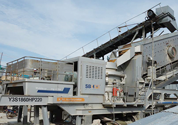 原料先通過YG938E69移動設備上的震動給料機進入PE69進行初級破碎,經過初級加工后的物料通過皮帶機傳送到第二臺移動設備Y3S1860HPC220,同前列條皮帶機先輸送物料到Y3S1860進行初級篩分,較大的物料用HPC220圓錐破進行二級破碎,用皮帶機把破碎后的物料輸送到前列條皮帶機上,再有前列條皮帶機輸送到篩子上繼續篩分出成品料。
