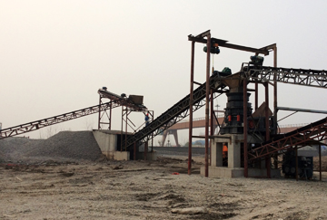 河卵石從船上到岸后先經(jīng)過一道簡單篩分,篩分出一部分成品,大于31.5MM以上的物料經(jīng)皮帶機輸送至HPT300多缸液壓圓錐破,破碎后的物料經(jīng)皮帶機輸送至3Y2460振動篩進行篩分,大于31.5MM的物料經(jīng)返料皮帶再次進入HPT300多缸液壓圓錐破進行破碎,到達要求粒徑的物料經(jīng)振動篩篩分出三種成品(0-5-16-31.5mm)