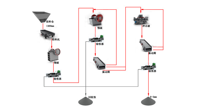 日運轉:12小時 進 料:經(jīng)過處理后粒徑小于400mm的鋼渣 成 品:0-5mm