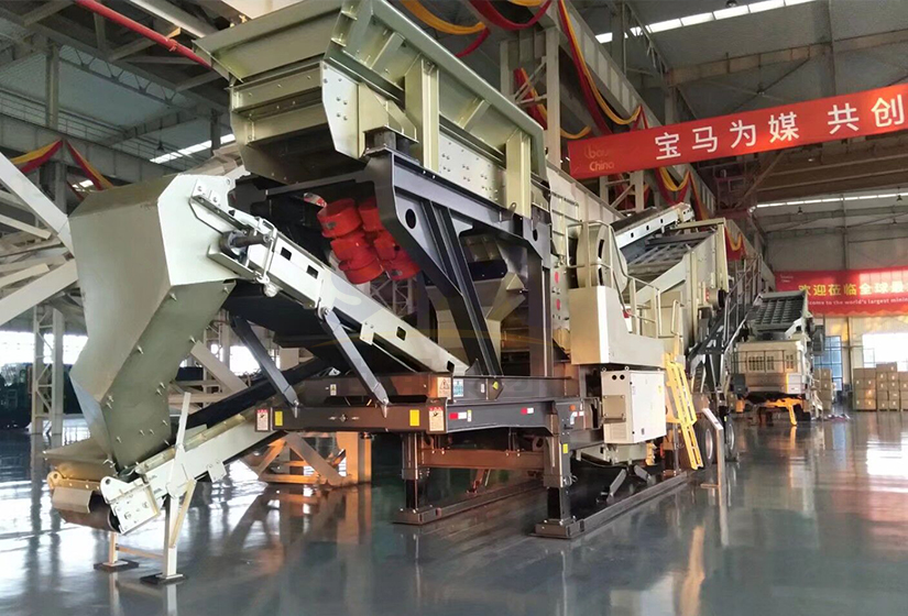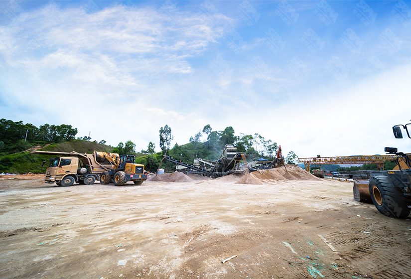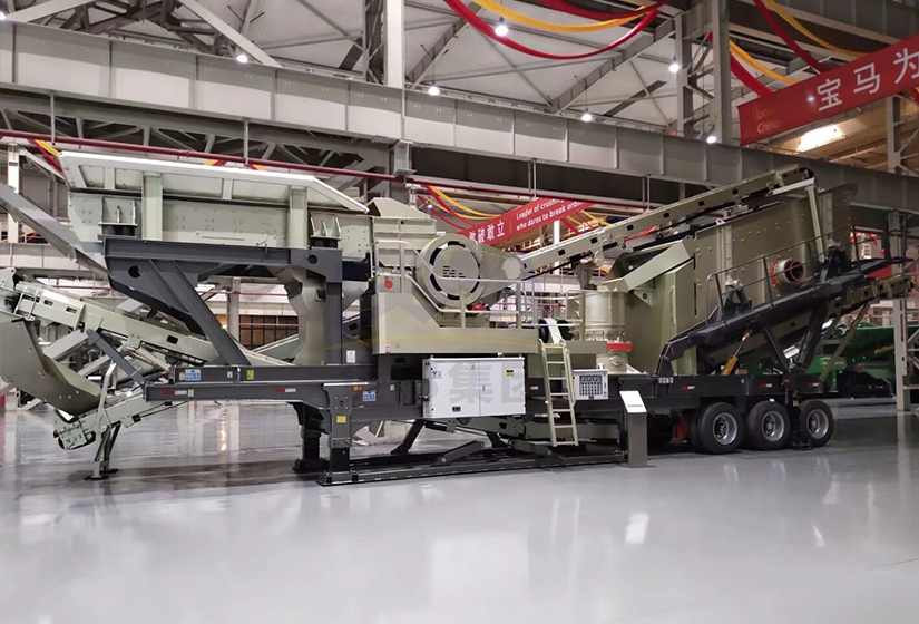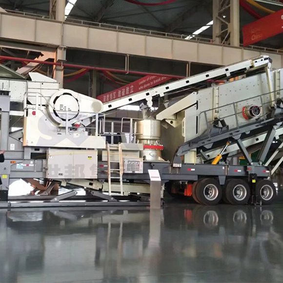移動生產(chǎn)線通常以外接電力電源為動力來源,原料由振動給料機均勻地送到顎式破碎機或者反擊式破碎機進行粗碎作業(yè),粗碎后的物料由皮帶輸送機送入到圓錐式破碎機或者反擊式破碎機進行進一步破碎,細碎后的物料被輸送到振動篩進行篩分,達到成品粒度要求的物料被由成品輸送帶輸出即為成品;未達到成品粒度要求的物料從振動篩返回沖擊式破碎機或者圓錐式破碎機重新加工,形成閉路多次循環(huán)。成品粒度可按用戶的需求進行組合和分級。