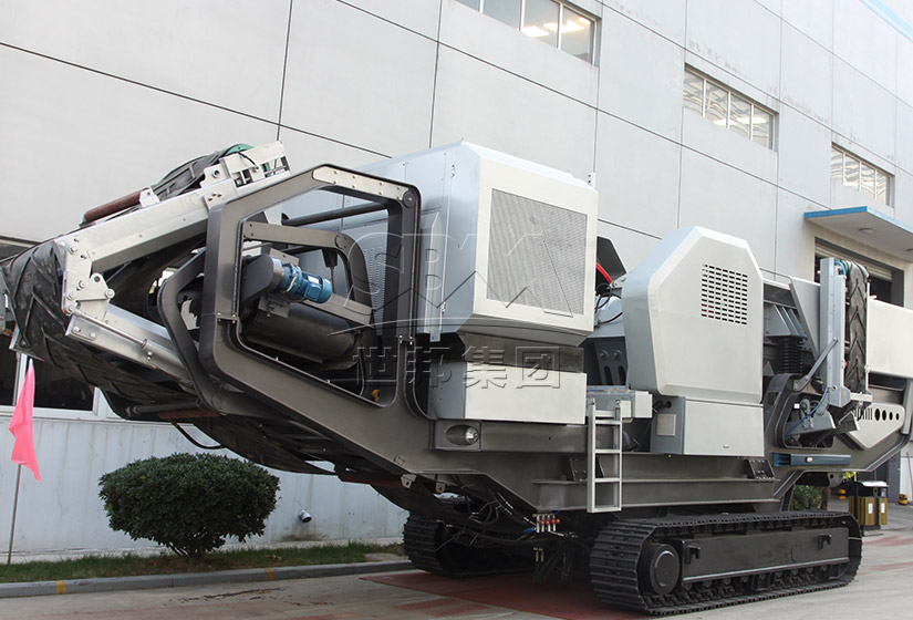 世邦集團履帶式移動破碎站由履帶底盤、車架總成、主機及輔助設備、動力系統和液壓電控系統組成。移動時,通過動力系統提供動力,由液壓電控系統控制驅動履帶底盤行走;安裝時,動力系統通過液壓電控系統控制驅動液壓缸等動作,自動完成設備安裝;工作時,動力系統通過液壓電控系統驅動和控制主機及輔助設備工作,物料從料倉進入搭載在履帶底盤和車架上的主機破碎或篩分后,通過集成式的皮帶機排出。