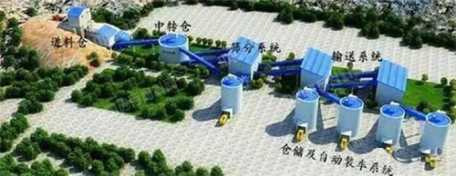 包括粗破喂料倉、中細破及制砂緩沖倉、產(chǎn)品儲存庫、石粉儲存庫。