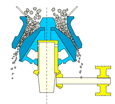 圓錐破碎機工作中,給料要均勻,不能偏移。如果給料不均會出現生產能力降低,產品粒度過大,彈簧動作頻繁,碗形軸承壓力大,功耗上升。壓力過大也會發生“飛車”和斷軸事故。