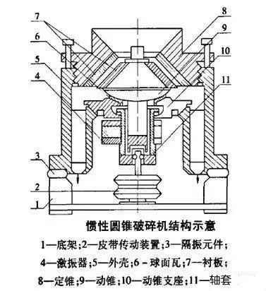 目前慣性圓錐破碎機仍處于應用、改進和發(fā)展中。可以說,其應用層壓破碎原理更徹底,能得到非常細粒級的產品,破碎比很大,用做超細碎或人工制砂,效果要比其他類型的圓錐破碎機好。