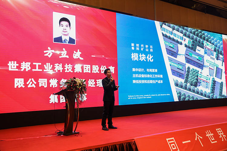 報(bào)告中,方總分點(diǎn)闡述了世邦在打造骨料礦山項(xiàng)目時(shí)對(duì)“綠色化、安全化、模塊化、工業(yè)化、智能化、品質(zhì)化”六大設(shè)計(jì)理念的堅(jiān)守,間接解讀了世邦集團(tuán)多年來如何吹響高質(zhì)量發(fā)展號(hào)角,實(shí)現(xiàn)了從單一裝備供應(yīng)商到綠色礦山一體化落地解決方案專家的身份轉(zhuǎn)型。