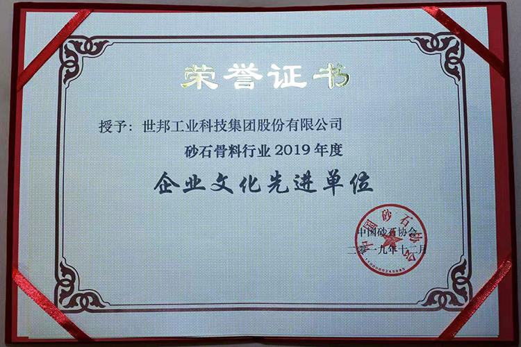 多年的奮力拼搏,世邦在一次次項(xiàng)目中顯露崢嶸,淋漓盡致的展現(xiàn)了其奮發(fā)向上的精神風(fēng)貌,為自己鍍上了耀眼的光輝,贏來(lái)了一項(xiàng)又一項(xiàng)殊榮。在閉幕式上,世邦集團(tuán)獲得了“砂石骨料行業(yè)卓越企業(yè)”“砂石骨料行業(yè)企業(yè)文化先進(jìn)單位”“砂石骨料行業(yè)創(chuàng)新企業(yè)”等多個(gè)榮譽(yù)稱號(hào),同時(shí),世邦卓越成員也以出色的表現(xiàn)贏得了“綠色發(fā)展先進(jìn)個(gè)人”“卓越職業(yè)經(jīng)理人”“卓越工程師”“卓越企業(yè)家”等榮譽(yù)稱號(hào)。