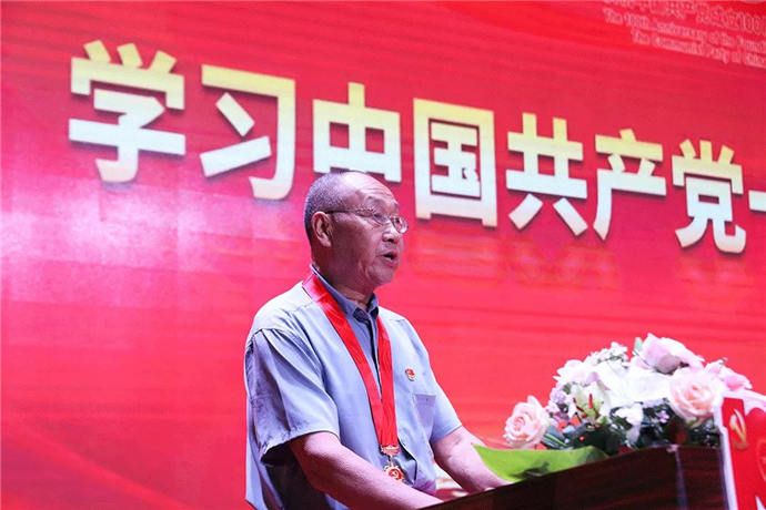 會上,世邦集團終身榮譽黨委書記張?zhí)觳艓ьI大家學黨史。