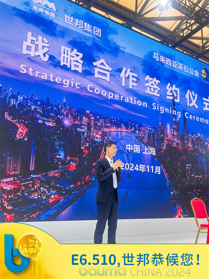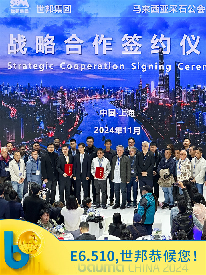 2024年11月26日,上海baumaChina展會(huì)首日,世邦集團(tuán)(SBM)與馬來(lái)西亞砂石協(xié)會(huì)(MQA)簽署了戰(zhàn)略合作協(xié)議!