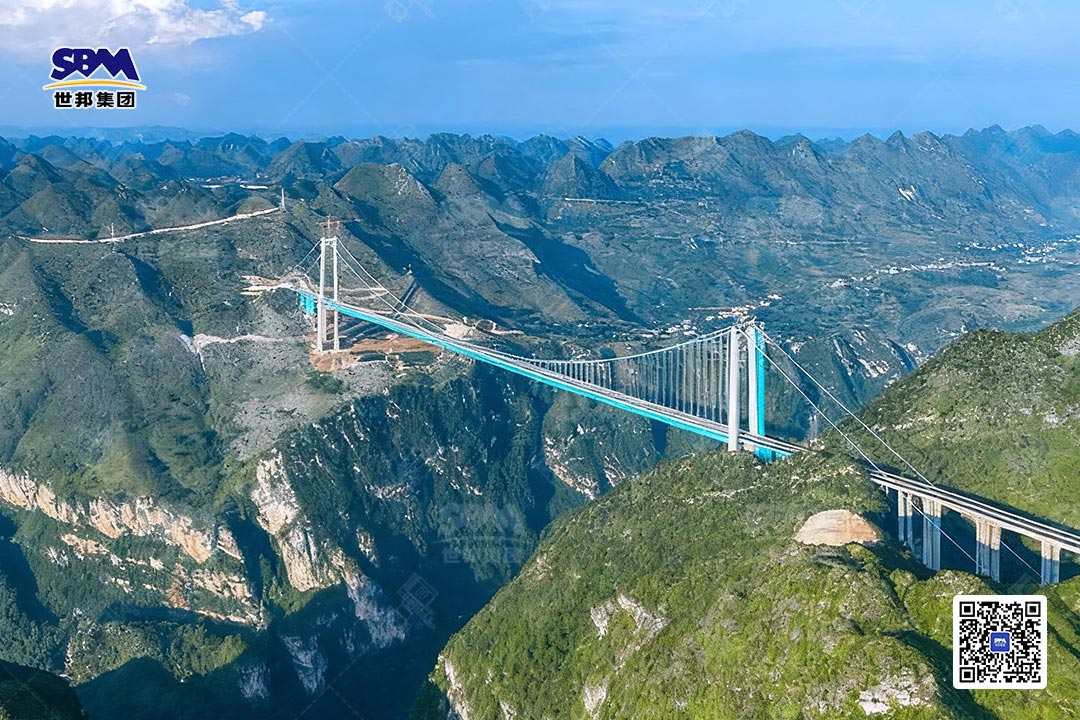 在這項令人矚目的工程背后,凝聚著無數(shù)建設(shè)者與專業(yè)裝備的協(xié)同努力。作為承建方,貴州橋梁建設(shè)集團(隸屬貴州交建集團)以其雄厚的技術(shù)實力和豐富的橋梁建設(shè)經(jīng)驗,承擔了這一超級工程的建設(shè)重任;而世邦集團作為破碎制砂裝備領(lǐng)域的深耕者,有幸為這條“云端天路”的基礎(chǔ)建設(shè)——六安高速公路,提供了可靠的砂石骨料生產(chǎn)設(shè)備與技術(shù)保障。