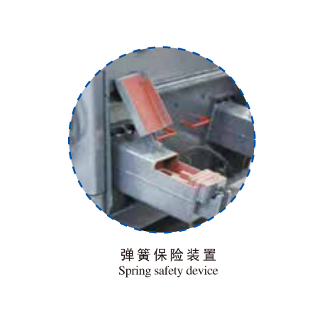 我們在反擊板上大膽采用世邦工業(yè)自主研發(fā)的技術(shù)——恒壓彈簧保險(xiǎn)裝置,當(dāng)非破碎物(如鐵塊)進(jìn)入破碎腔后,前后反擊架后退,非破碎物自動(dòng)從機(jī)內(nèi)排出,反擊板則復(fù)位并正常工作,進(jìn)而消除機(jī)器卡死的隱患。由于整個(gè)過程是自動(dòng)化完成,大大減少了人工停機(jī)清掃維護(hù)時(shí)間,極大提升了整個(gè)生產(chǎn)線的生產(chǎn)效率。