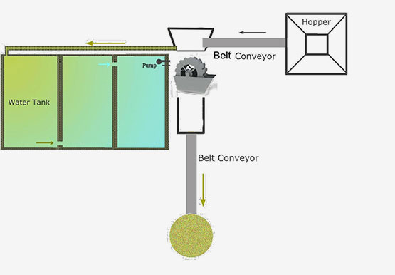 該設(shè)備兼有清洗、脫水、分級三種功能;工作時,在葉輪的帶動下,砂石互相研磨,除去覆蓋砂石表面的雜質(zhì),同時破壞包覆砂粒的水汽層,并在強大水流完成清洗除雜功能。