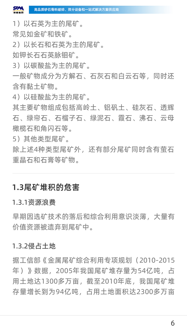 隨著我國環保力度的加大,如何妥善處理礦產資源開發過程產生的尾礦,實現資源綜合利用成為在礦山企業面前的一個重要問題。事實上,根據尾礦礦物組成、巖石性質、粒度特征因素,科學合理的設計制砂工藝流程,可實現85%的尾礦利用率。